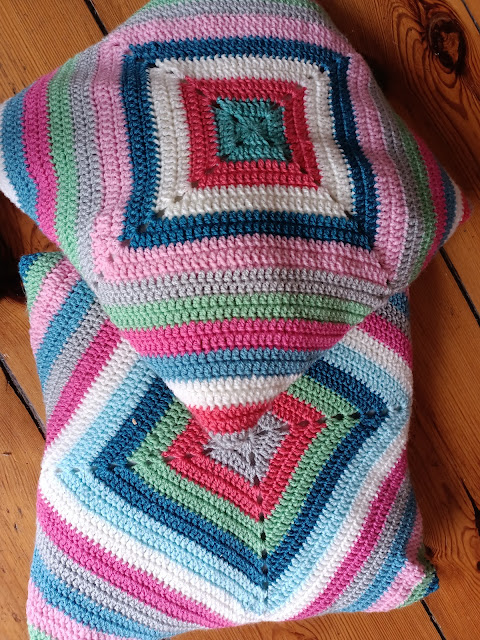 Ostatnio uszyłam poduszki wykorzystując haft wełną , który kiedyś pokazywałam na blogu. Użyłam kawałki materiału w kratkę.
