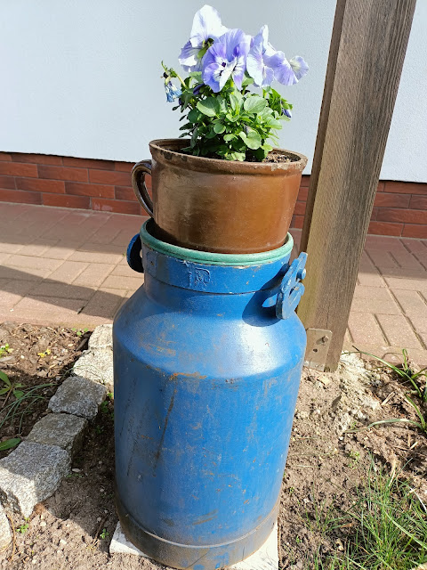 Ostatnio byłam na złomie i wynalazłam taką niebieską kankę za grosze.